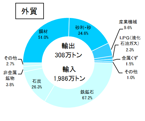 背後地域は、機械工業を中心に鉄鋼、エネルギー、化学等の各種企業が立地し、鉄鉱石、石炭を輸入、鉄鋼・金属機械工業品を生産・輸出している。